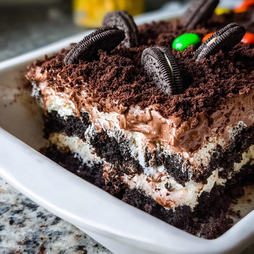 I love that you are thinking about making this your own! While Oreos are the classic star—they are sturdy enough to hold up to the pudding—you can totally experiment. If you’re looking for Unique Cookie Recipes that bring a slightly different flavor, try using chocolate graham crackers, or even dark chocolate wafers. If you use something that isn’t chocolate-filled, you might miss that extra bit of fat and sweetness that helps the layer stay firm. If you try alternatives, it definitely leans more toward being like a traditional dump cake recipe, so just be ready for a slightly different crumble texture!