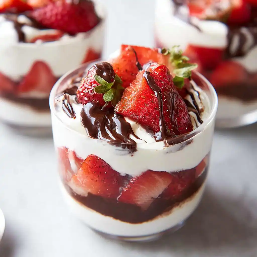 You certainly can! If you don’t want to make individual **chocolate strawberry cups**, grab an 8×8 inch baking dish or even a clear glass trifle bowl. Just layer everything the same way—strawberries on the bottom, then the cream, then chocolate. When you do this, you might need to up your chilling time just a tiny bit, maybe to 90 minutes, because the overall mass is thicker. When you serve it, you’ll just scoop it out like a layered parfait!