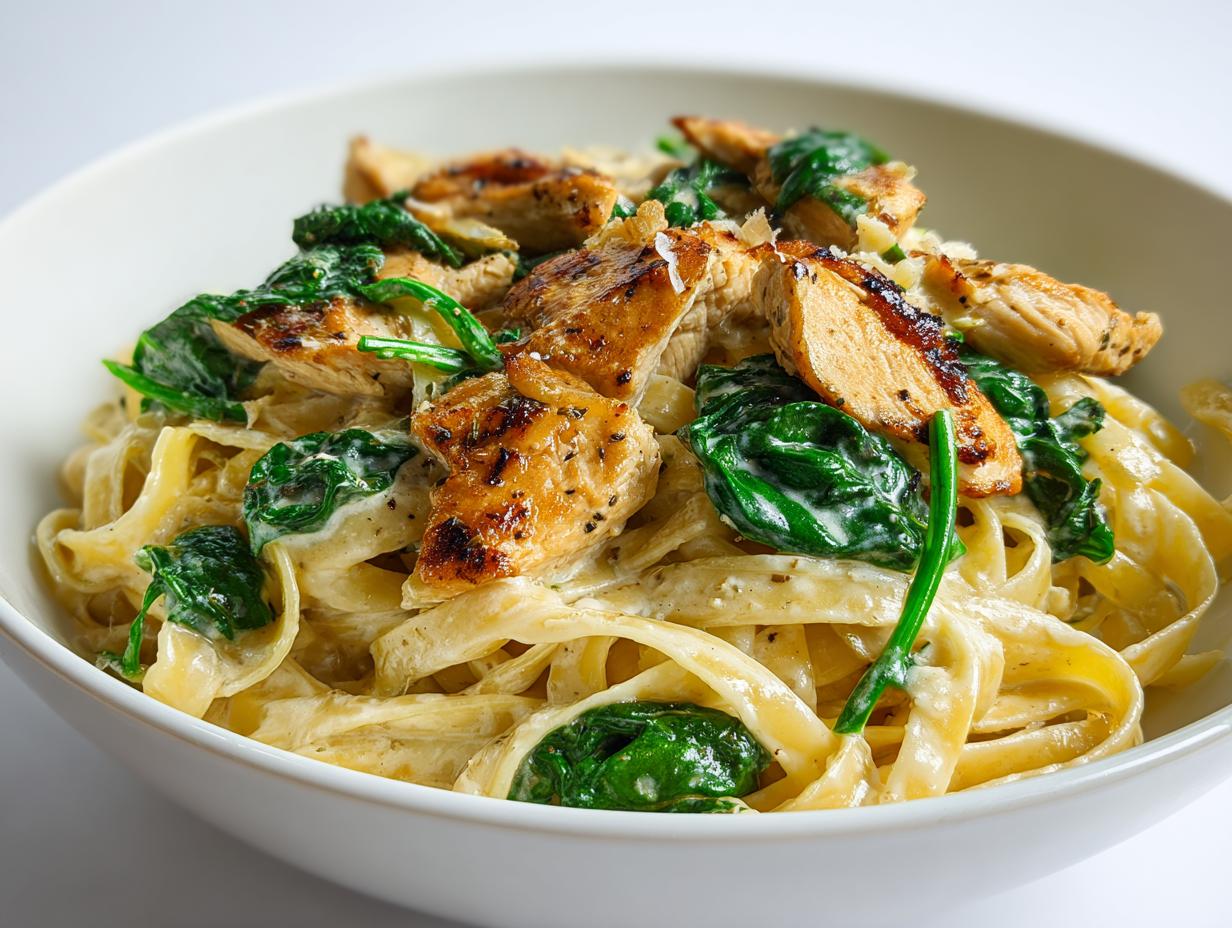 Once your sauce looks smooth and creamy, toss in that optional cup of spinach and stir until it dramatically wilts down—that only takes maybe a minute. Drain your pasta really well (no extra water allowed!) and put the cooked chicken right back into the skillet with the sauce. Now, add all that pasta in there! Gently toss everything together, making sure every strand and piece of chicken gets nicely coated with that sauce. It should look glossy and inviting. Serve it immediately with a sprinkle of fresh black pepper and maybe a little extra cheese on top!