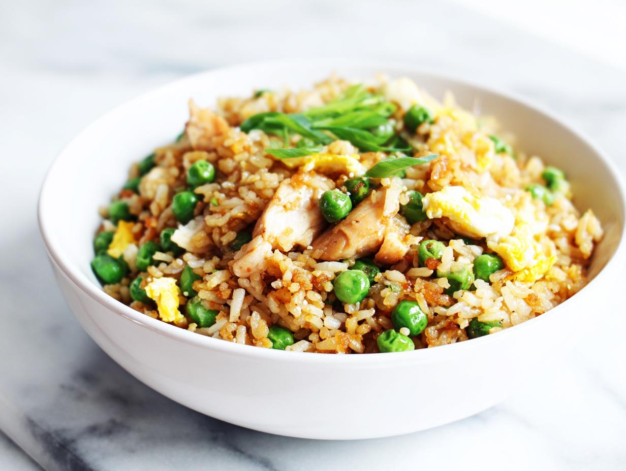 Meal prepping this for later in the week is a brilliant idea. To make this a truly chicken rice dinner easy prep situation, cook a huge batch of rice on Sunday. Then, cook your chicken and peas mixture separately (don’t add the final soy sauce yet). Store the cooked rice, the cooked chicken/veg mix, and the sliced green onions in three separate airtight containers. When lunchtime or dinner rolls around on Wednesday, just measure out your portions, toss the chicken mixture in a hot skillet, add the rice and soy sauce, heat it through for those five minutes, and you are done! It tastes fresh every time.