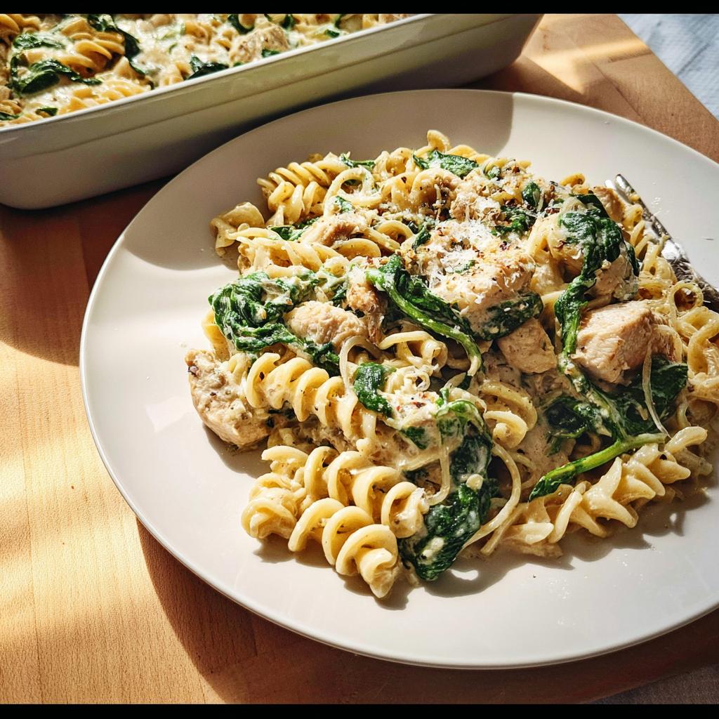 This recipe gives you that rich, savory flavor you expect from a classic garlic parmesan sauce, but we use smarter ingredients to keep things light. When we tested this one, adding two big cups of spinach was the key moment—it gave the dish such gorgeous color and honestly balanced out the creaminess perfectly. Trust me, this chicken pasta is going to become your new go-to solution for balanced comfort food.