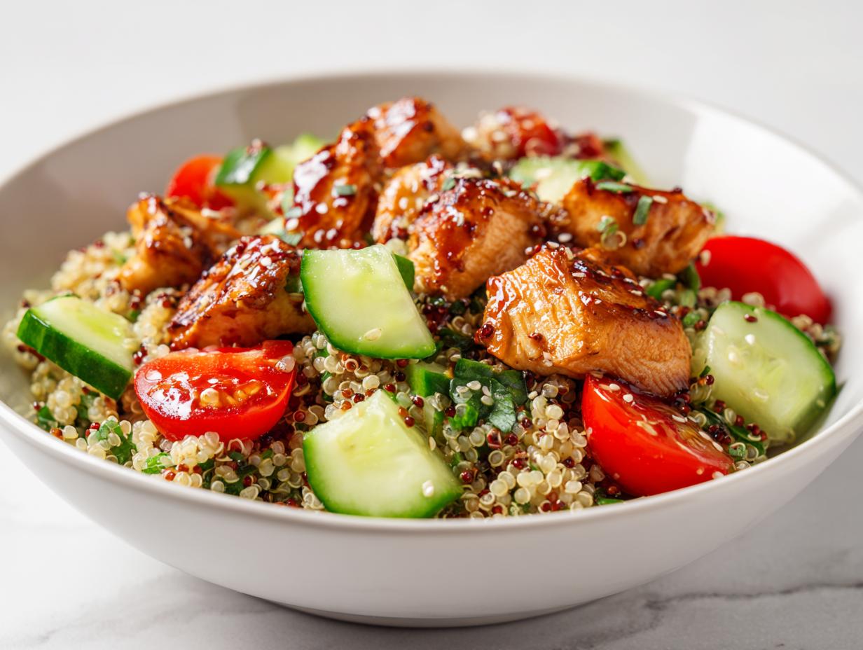 Second tip, which I learned the hard way: wait for that quinoa to cool just a touch. If you dump the cold veggies and chicken onto scorching hot quinoa, you end up with soggy cucumbers. Nobody wants that! For more creative ways to keep your chicken light and fresh, check out Betty’s amazing avocado chicken salad recipes. It’s all about keeping things vibrant for summer!