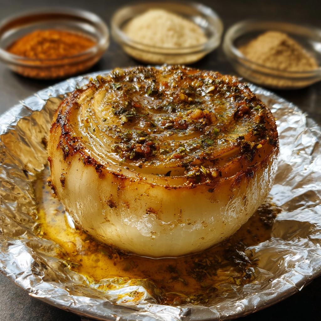 You can totally prep these ahead of time, which is fantastic for entertaining! Just peel and season the onions, wrap them tightly in the foil, and store them on a plate in the fridge for up to 24 hours. Just make sure when you bake them, you add about 10 minutes to the total cook time since they are starting cold.