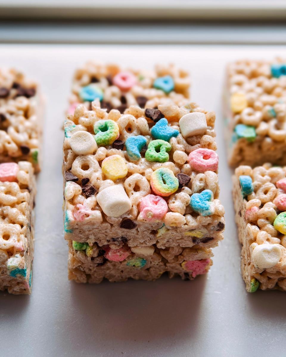 Lucky Charms Rice Krispie Treats with Chocolate Chips