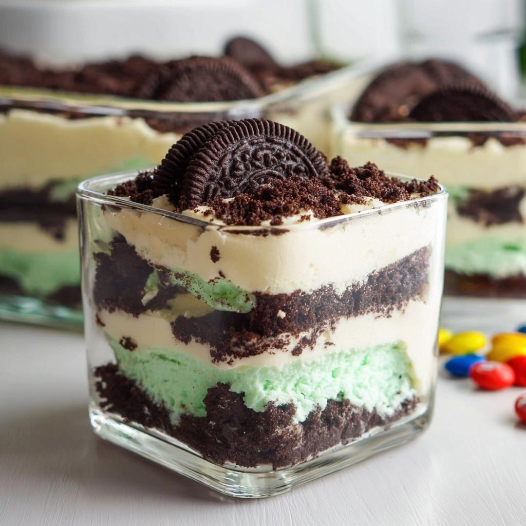 I always save a few extra crushed Mint Oreos to sprinkle over the top layer for that fresh crunch, or sometimes I use a vegetable peeler to make delicate chocolate shavings. A few real fresh mint leaves placed on top look stunning! You can find more tips on presentation in my general Dessert category.