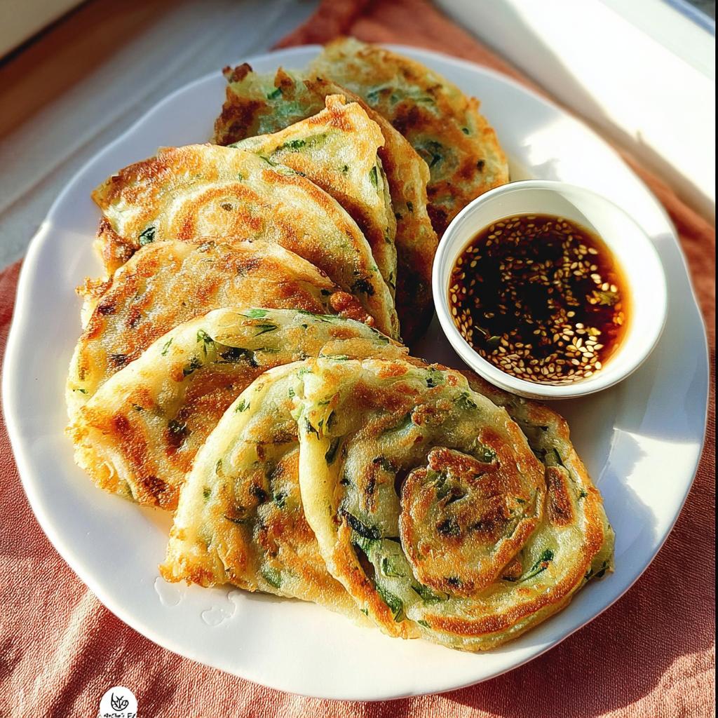 I usually make a super quick dipping sauce right while the last pancake is frying up. It takes literally two minutes, and it cuts through the richness of the oil just perfectly. You can try dipping them in soy sauce mixed with a little rice vinegar, maybe float a tiny bit of chili garlic oil on top if you like heat. That combination of salty, sour, and savory is heaven!