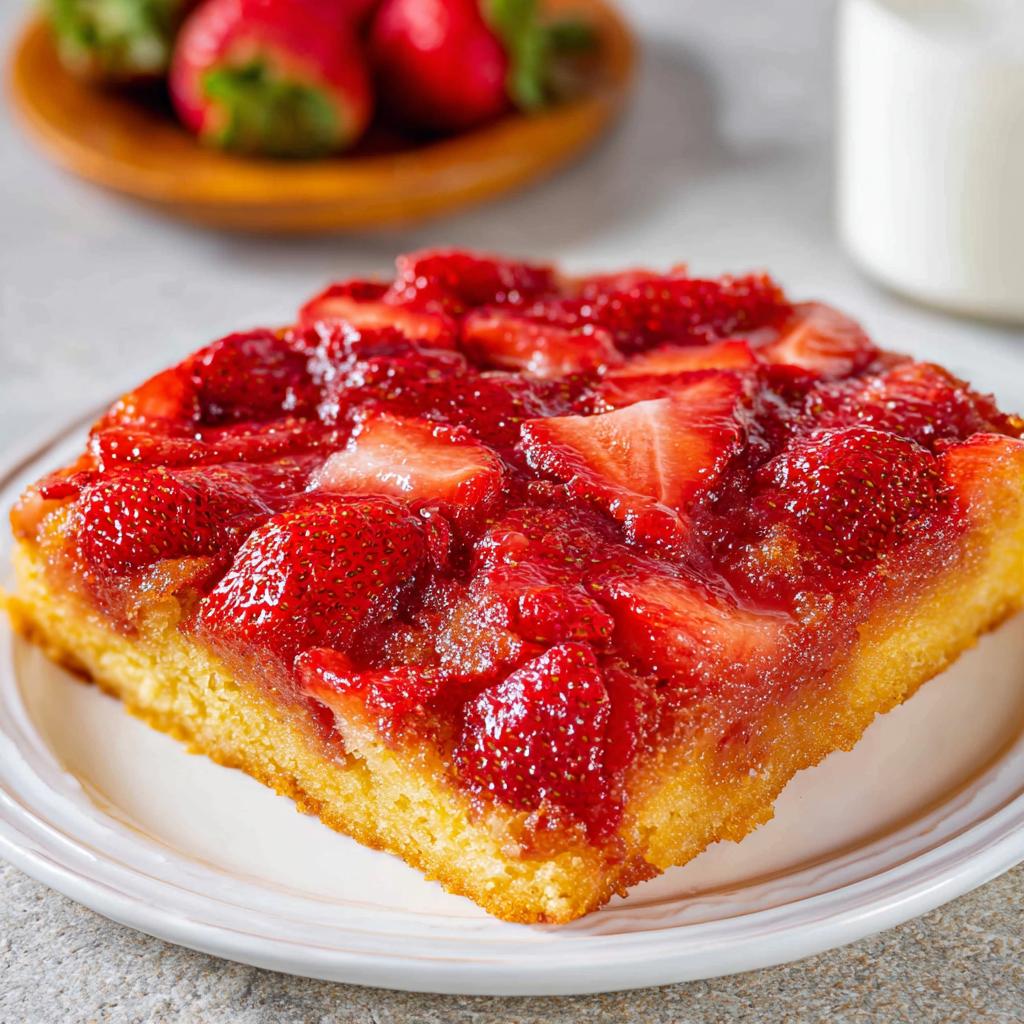That’s a fun comparison! It’s not quite the same. A traditional Strawberry Shortcake Cake usually involves layers of soft, whipped cake topped with fresh, sliced strawberries and tons of whipped cream. Our **Simple Strawberry Upside Down Dessert** is denser, almost like a buttery fruit cake, and it has that wonderful caramelized fruit topping baked right into it. It’s an easier, slightly more rustic cousin to the shortcake!