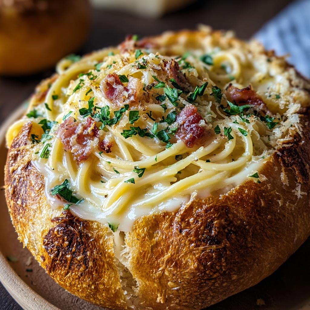 Why This Spaghetti Carbonara Bread Bowl (eggs + pancetta) is Italian Comfort Food Redefined
