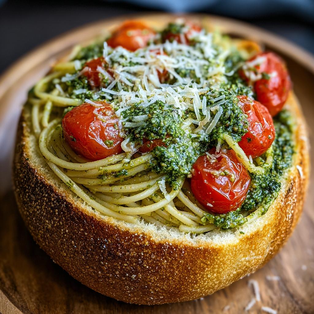 Expert Tips for the Perfect Spaghetti Pesto Bread Bowl (pesto + tomatoes)