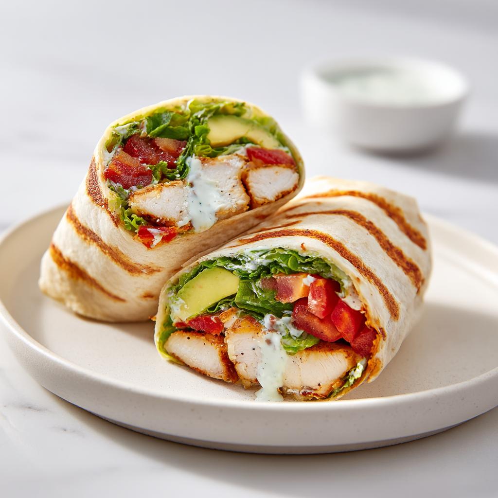 First up: that grilled chicken! If you’re grilling your own, make sure you don’t overcook it when you prep it ahead of time. Dry chicken ruins a wrap faster than anything else. I always splash mine with a tiny bit of water or broth right before chopping it up and seasoning it for the wrap. It brings that moisture right back.