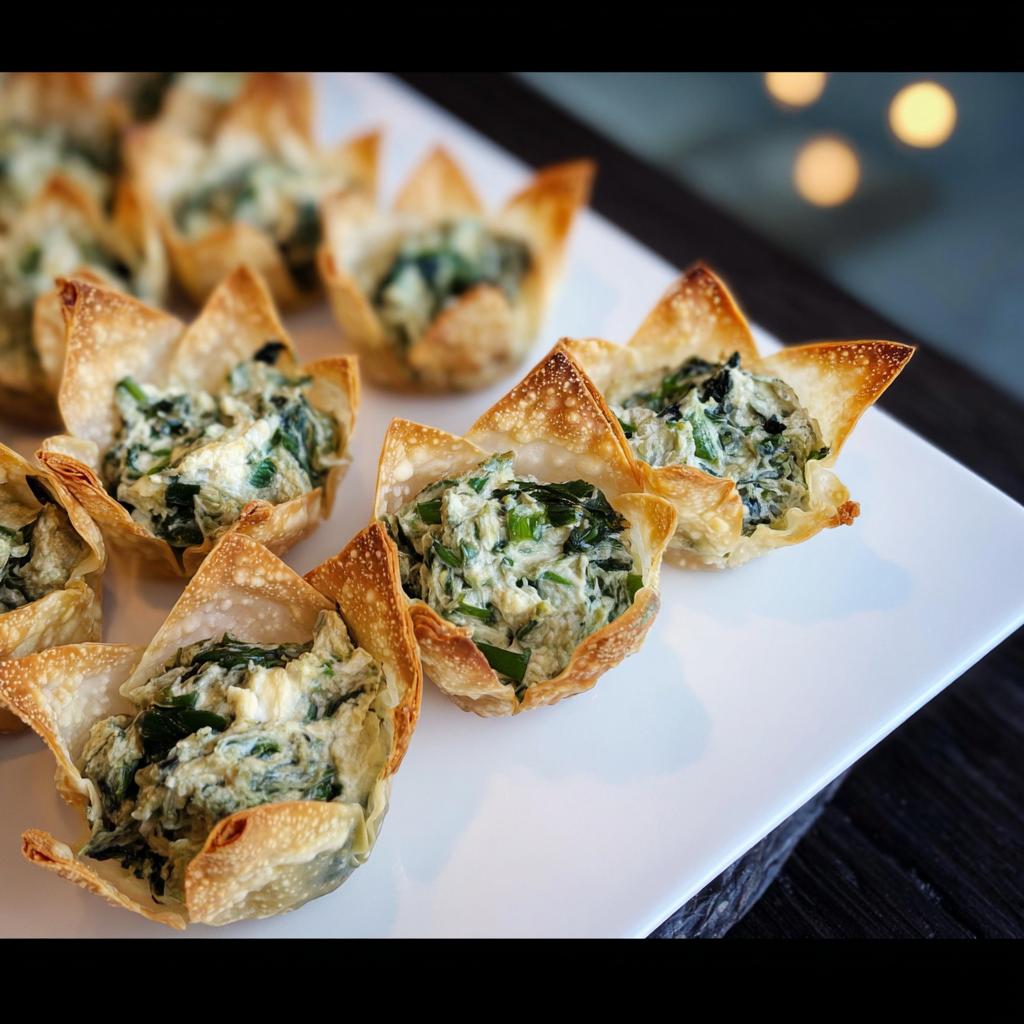 Vegan Spinach Artichoke Wonton Cups